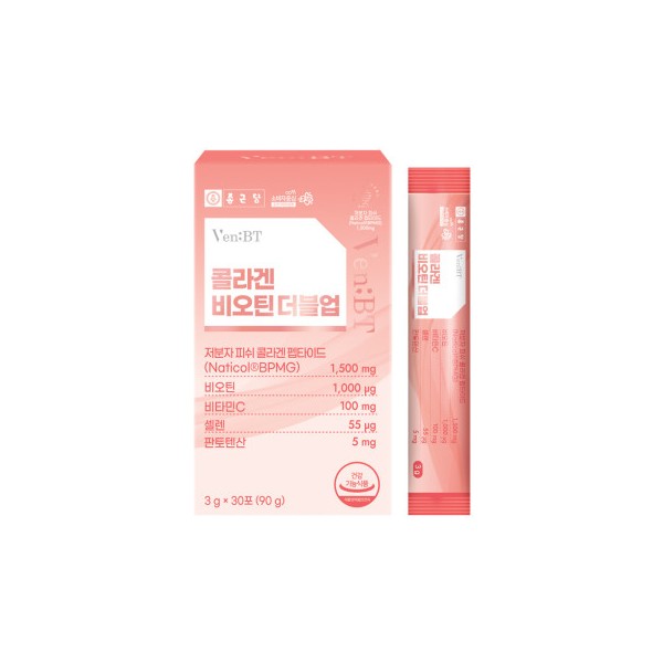 [실온]종근당 벤비티 콜라겐 비오틴 더블업 3gx30포 1개월 저분자 펩타이드 개별인정형, 1 box